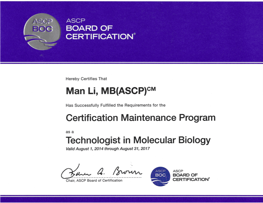 美国IVF实验室主任,美国CAP/CLIA/NYS分子诊断实验室主任,美国IVF实验室检查官,负责审批和检查各地IVF实验室,美国临床CAP分子实验室检查官
